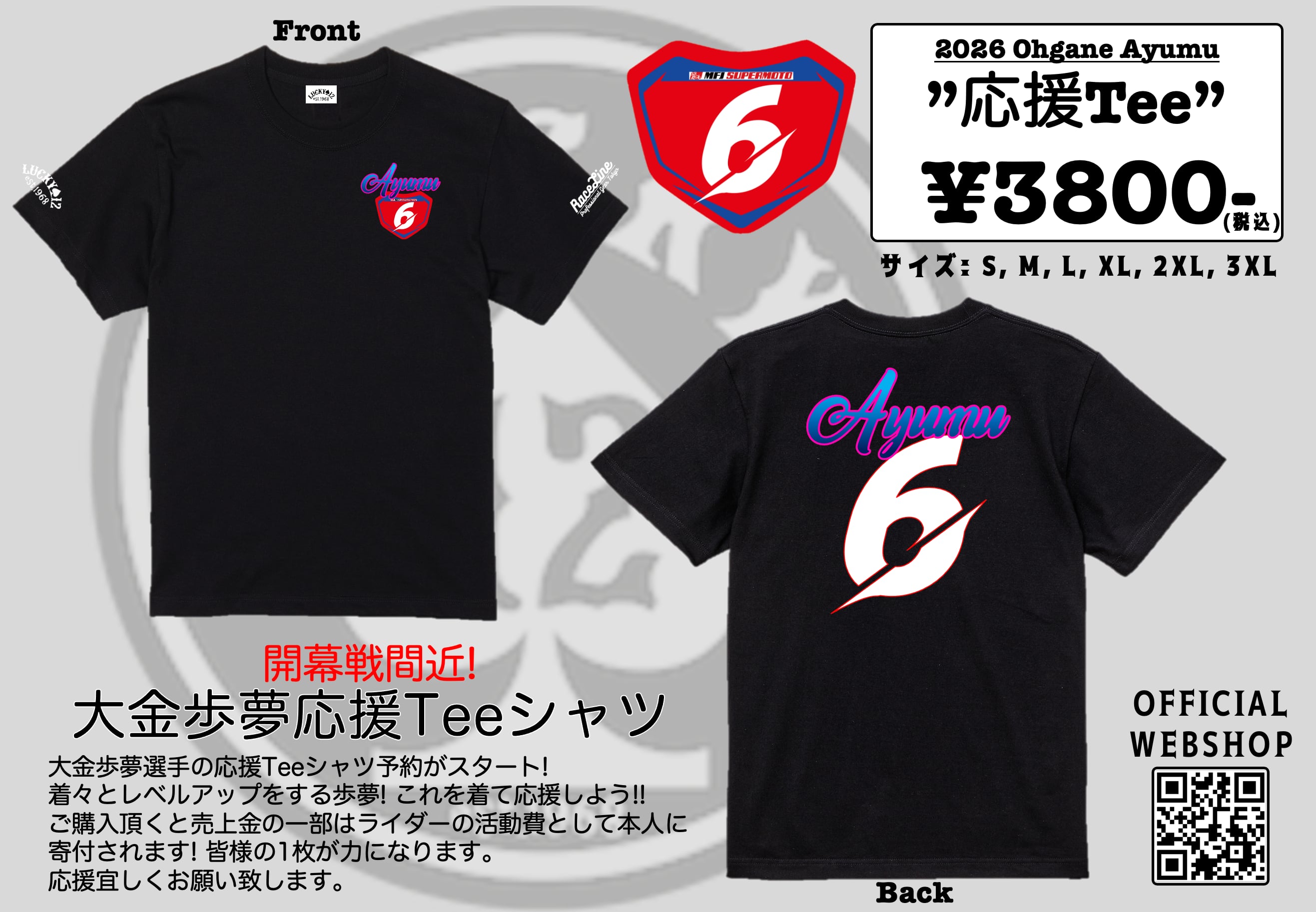 ご購入頂くと売上金の一部はライダーの活動費として本人に